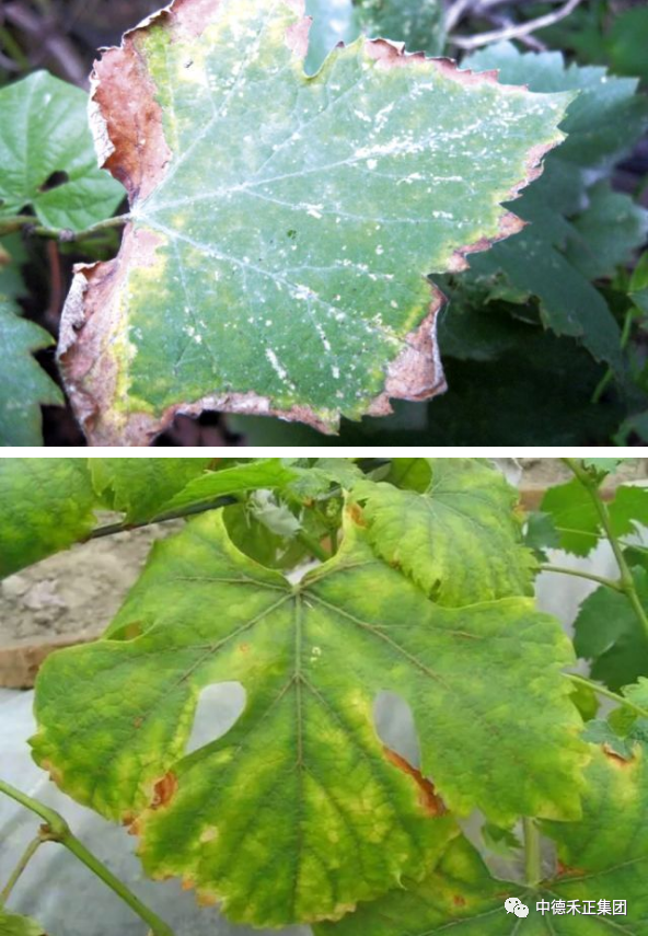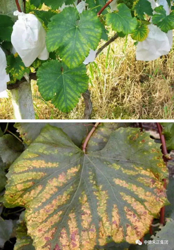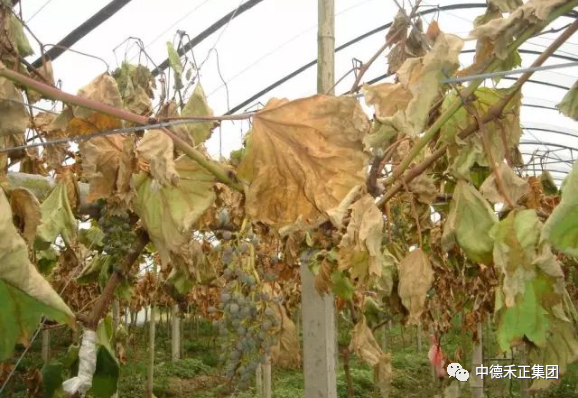生理枯葉中,熱害所致往往是發生比較多的,輕微的影響不大,但嚴重時會對葡萄生長構成威脅,要注意預防。主要方法包括合理供水、降溫遮陽、噴施高效性農藥殺菌劑+禾正中藥葉面肥600倍液進行中西醫結合防治,且禾正中藥葉面肥能夠為植株補充鈣、鎂、硼等中微量元素,來增強葉片對于高溫的抵抗能力和保持良好的光合效率。